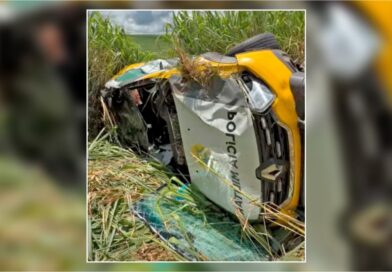 Viatura da PM de Cianorte capota na PR-444 após cone cair na pista