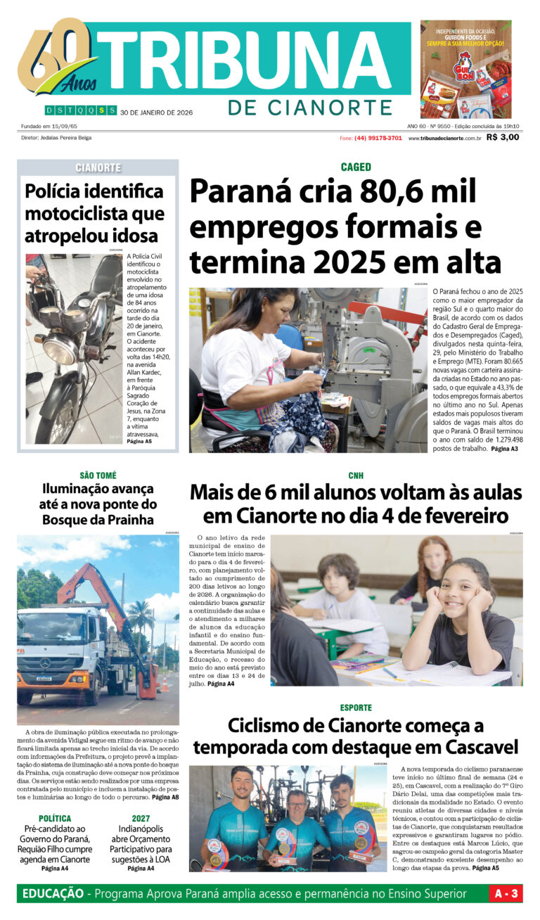 Cianorte define calendário escolar para 2026 com início em fevereiro