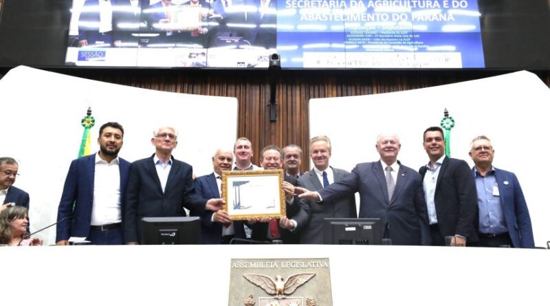 A sessão solene desta terça-feira (3), no Plenário Deputado Waldemar Daros da Assembleia Legislativa, fez homenagem aos 80 anos da Secretaria da Agricultura e do Abastecimento do Paraná (SEAB), em reconhecimento da contínua promoção de oferta sustentável de alimentos saudáveis e seguros, fibras e bioenergia, através da pesquisa, inovação, empreendedorismo e gestão de risco, que em oito décadas vem modernizando a infraestrutura do campo, o uso da terra e dos recursos naturais, agregando valor e competitividade aos produtos para a melhor qualidade de vida da população paranaense.