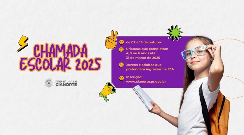 Em Cianorte, a Secretaria Municipal de Educação está convocando os pais ou responsáveis por crianças que completam 4, 5 ou 6 anos até 31 de março de 2025 e ainda não estão matriculadas na rede municipal de ensino, ou que atualmente estudam em escolas particulares e desejam transferência para a rede pública no próximo ano letivo, para que realizem o cadastro na Chamada Escolar.