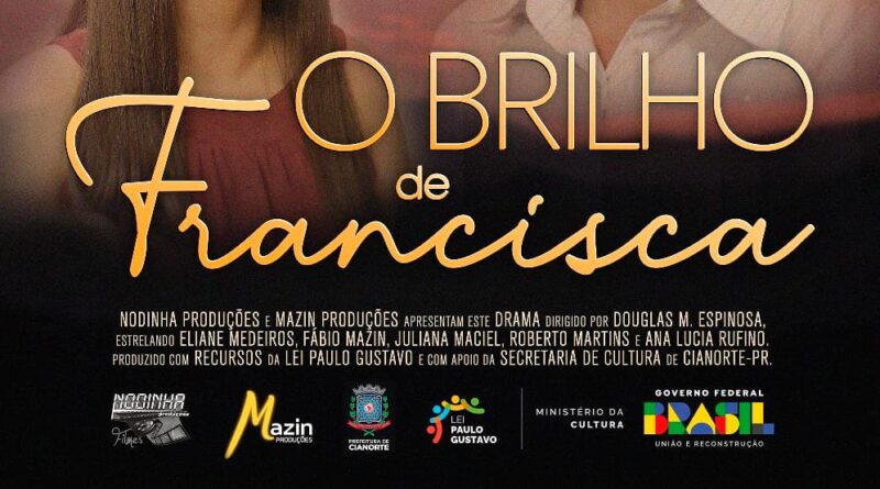 Cianorte chega às telas do cinema, neste sábado, 22, com a pré-estreia do filme “O Brilho de Francisca”, produção inteiramente gravada no município. O evento, que acontecerá no Cine Teatro Cianorte às 19h, reunirá elenco, equipe de produção, empresários, autoridades e membros da imprensa. Com caráter beneficente, a sessão terá meia-entrada solidária de R$ 10, mediante a doação de alimentos não perecíveis, que serão destinados a organizações locais de assistência social.