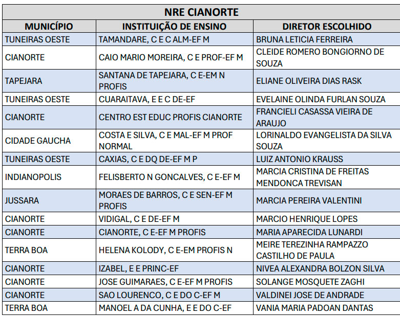 Os novos diretores das escolas estaduais do Paraná assumiram a função nesta sexta-feira (02), marcando o início de um novo ciclo de gestão nas unidades. A designação dos profissionais ocorre após a conclusão do Processo de Consulta à comunidade escolar, que definiu as lideranças responsáveis pela condução pedagógica e administrativa das instituições de ensino nos próximos quatro anos.