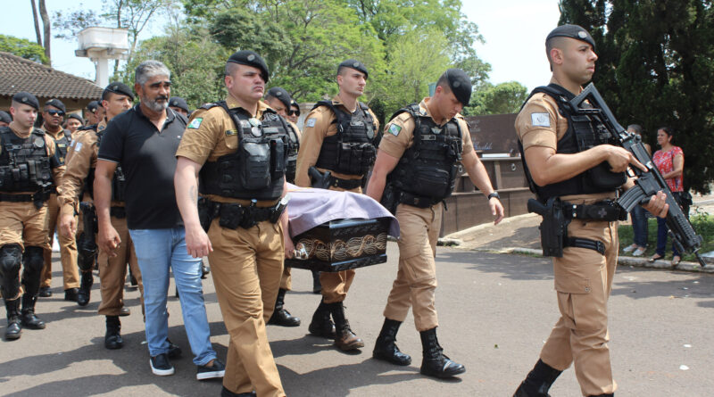 Amigos e familiares se despediram do cabo da Polícia Militar, Reinaldo José Garozi, na manhã desta terça-feira, 19. O policial morreu após ser baleado em uma ação policial, na noite de domingo, 17, em Cianorte. Sob aplausos, a despedida contou com a presença do comando regional da PM, e do secretário de Segurança Publica do Paraná, Hudson Leôncio Teixeira, além de lideranças regionais e muitos cianortenses.