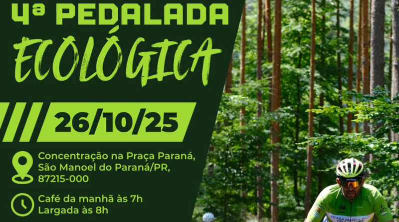 A Prefeitura de São Manoel do Paraná, em parceria com a Secretaria Municipal de Meio Ambiente, Sustentabilidade, Turismo e Cultura e o apoio das demais secretarias, anunciou a realização da 4ª edição da Pedalada Ecológica, marcada para o dia 26 de outubro de 2025. O evento, já tradicional no calendário local, promete reunir ciclistas e famílias em um momento de lazer, esporte e contato direto com a natureza.