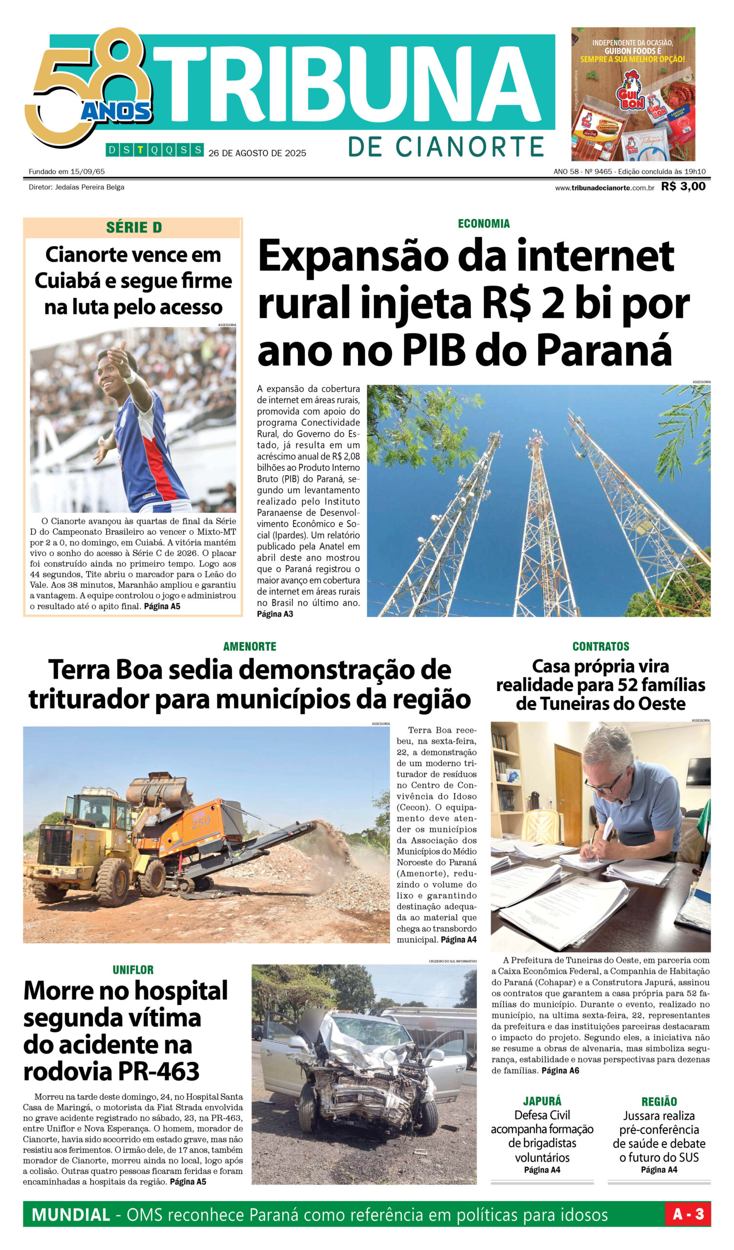 Homem de 32 anos morre após entrar em telhados e acessar forro de residência em Cianorte