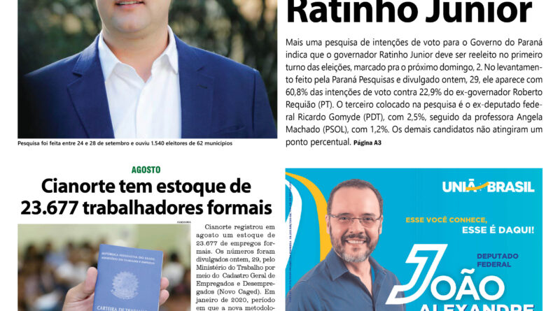 Última pesquisa Radar antes da eleição aponta Ratinho Junior com 68% dos votos válidos
