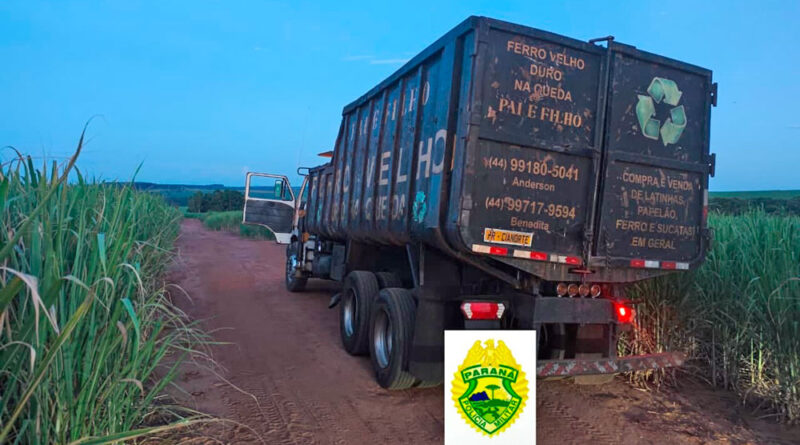 Um caminhão com registro de furto foi recuperado na noite de segunda-feira, 26, em uma estrada rural de Cianorte. A localização ocorreu por volta das 19h30, entre o município e o distrito de São Lourenço.