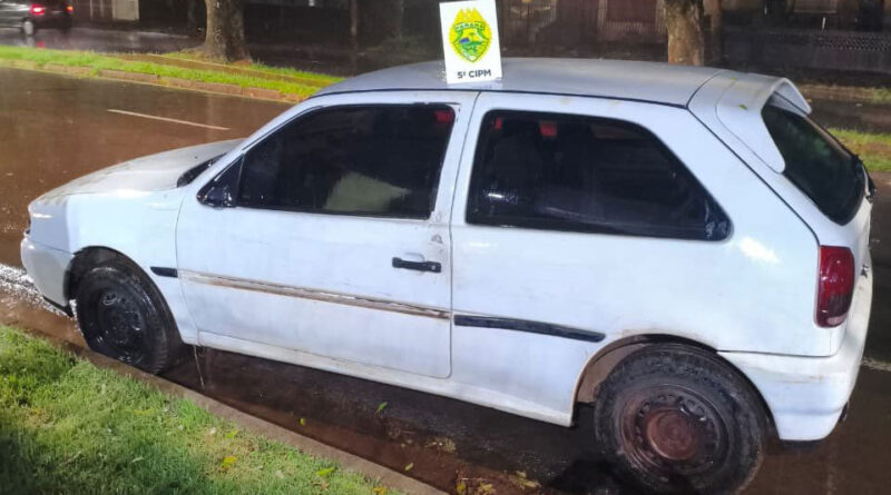 O veículo, um VW Gol branco, havia sido furtado no dia 21 de março. Ele foi localizado por volta das 17h15 em uma plantação de milho, na Estrada Velha para Cerâmica, após denúncia de um produtor rural.