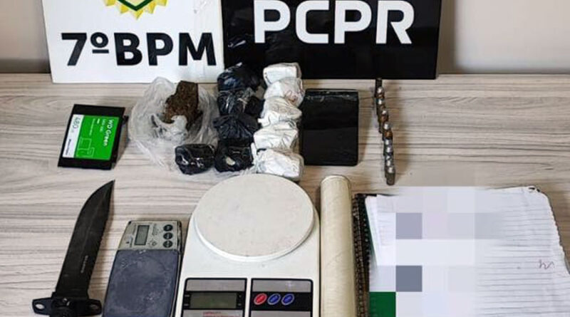 Na residência alvo da operação, os agentes localizaram 150 gramas de cocaína, 275 gramas de crack e 70 gramas de maconha, além de 13 munições calibre .40 intactas, uma munição calibre .38 deflagrada, duas balanças de precisão e anotações relacionadas ao tráfico de drogas.