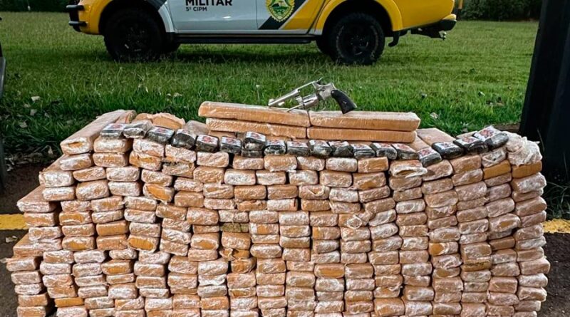 Uma operação conjunta entre diversas forças policiais resultou na apreensão de uma grande quantidade de drogas e uma arma de fogo na tarde de sábado, 15, na PR-323. A ação envolveu equipes da 5ª CIPM, 4° BPM, 32° BPM, BPFRON, NEPOM/PF e TOR/PMMS, que monitoravam uma VW Amarok preta suspeita de transportar entorpecentes.