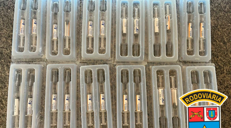 Durante a revista, os cães de faro Zeus e Thor foram empregados, mas não indicaram a presença de entorpecentes. Na sequência, os policiais vistoriaram o porta-malas e encontraram um recipiente com diversos medicamentos de origem estrangeira e de importação proibida.