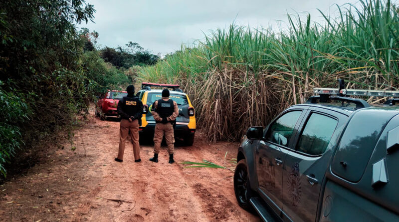 Por volta das 16h, durante patrulhamento próximo ao trevo do Bigão, a guarnição de São Tomé avistou um Uno vermelho que correspondia às características do veículo procurado. Os policiais tentaram abordar o automóvel utilizando sinais sonoros e luminosos, mas o motorista fugiu em alta velocidade por uma estrada secundária não pavimentada, até abandonar o carro nos fundos de uma propriedade rural, próxima a uma área de mata.