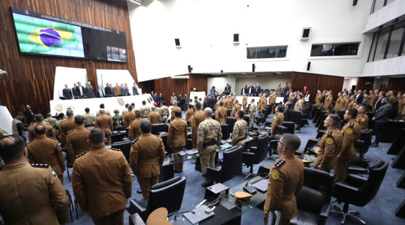 A Assembleia Legislativa do Paraná realizou, nesta terça-feira (12), no Plenário, sessão solene em homenagem aos 171 anos da Polícia Militar do Estado. O evento contou com a presença de parlamentares, integrantes da corporação e representantes de órgãos públicos e entidades de classe, que destacaram o papel da instituição na manutenção da segurança e da ordem no Paraná.