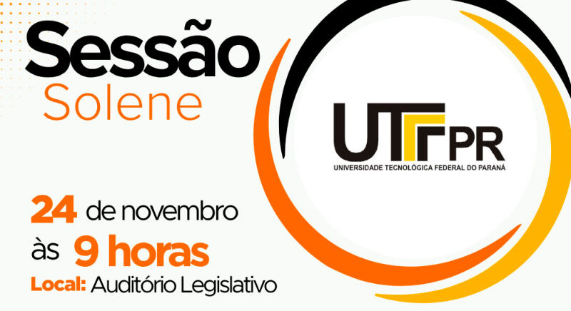 A Assembleia Legislativa do Paraná (Alep) realiza, na segunda-feira (24), às 9 horas, sessão solene em comemoração aos 20 anos da criação da Universidade Tecnológica Federal do Paraná (UTFPR). Proposta pelo deputado estadual Goura (PDT), a homenagem acontece no Auditório Legislativo e terá transmissão ao vivo pelas redes sociais da Alep.