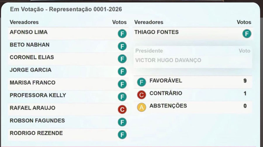 A Câmara Municipal de Cianorte aprovou, na primeira sessão ordinária de 2026, realizada na noite de segunda-feira, 2, o prosseguimento da Representação nº 001/2026, referente a uma petição de representação/denúncia protocolada em 4 de dezembro de 2025, sob o nº 3257/2025, em desfavor do vereador Rafael dos Santos Araújo.