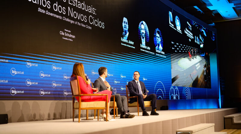 O governador Carlos Massa Ratinho Junior participou nesta quarta-feira (15) de uma mesa de debates do CEO Conference 2023, um evento voltado ao público empresarial promovido pelo banco BTG Pactual, em São Paulo. Ao lado dos governadores do Rio Grande do Sul, Eduardo Leite, e de São Paulo, Tarcísio de Freitas, ele defendeu o modelo de gestão adotado pelo Governo do Paraná a partir de 2019, baseado em concessões à iniciativa privada, eficiência da gestão pública e programas sociais.
