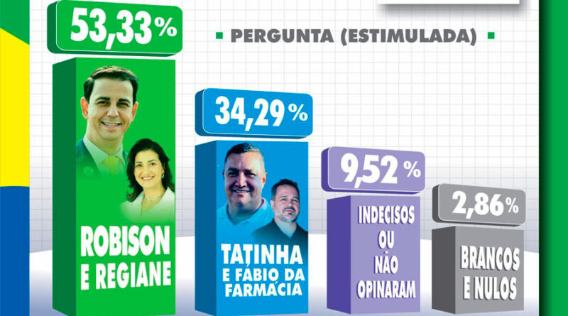 Ao serem apresentados com chapas específicas de prefeito e vice, Robison e sua vice Regiane obtiveram 53,33% das intenções de voto, mantendo uma vantagem significativa sobre a dupla Tatinha e Fábio da farmácia, que recebeu 34,29% das preferências. Além disso, 9,52% dos eleitores se mostraram indecisos ou não opinaram, e 2,86% declararam que votariam em branco ou nulo.
