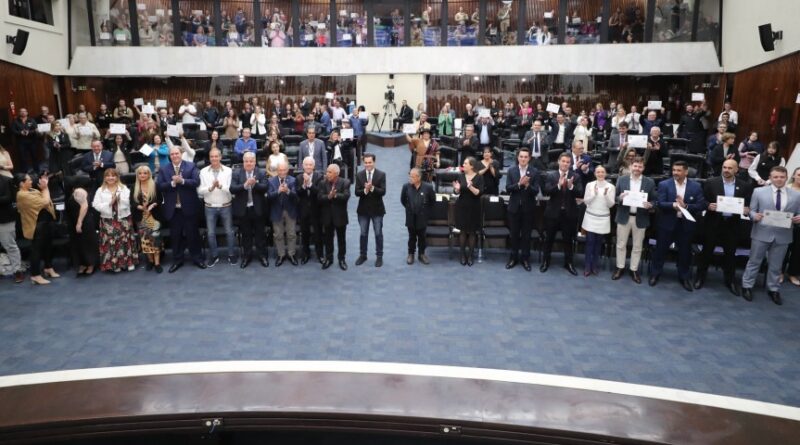 Alusivo ao Dia do Trabalhador, a Assembleia Legislativa do Paraná promoveu nesta terça-feira (29), no Plenário da Casa, uma sessão solene em homenagem aos trabalhadores paranaenses em destaque. Esta foi a 30ª edição deste evento, denominado Prêmio Personalidades Empreendedoras e organizado pela Fundação Força Trabalhista do Paraná (Fotrapar). Os proponentes do evento foram os deputados Marcio Pacheco (PP) e Ney Leprevost (União).