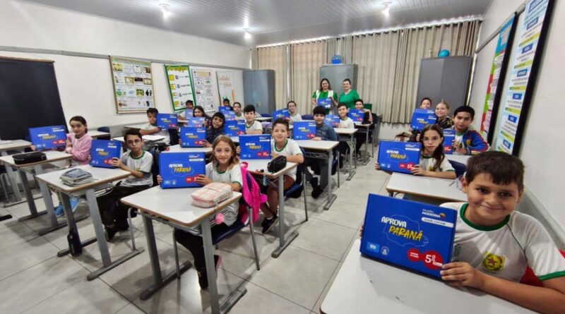Alunos do 5º ano do Ensino Fundamental das escolas municipais de Terra Boa começaram a receber, na última semana, kits do programa estadual “Aprova Paraná”. A entrega, realizada na terça-feira, 13, contempla 240 conjuntos de materiais didáticos voltados à preparação para o SAEB (Sistema de Avaliação da Educação Básica).