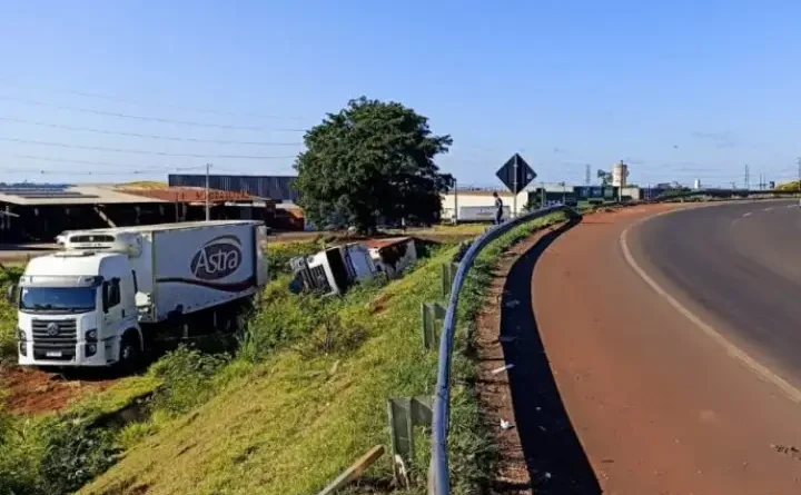 Um caminhão que transportava 15 mil quilos de carne bovina acabou perdendo o controle por volta das 4h30 da madrugada desta sexta-feira (25), na PR-323, próximo ao Parque Itaipu, em Maringá.