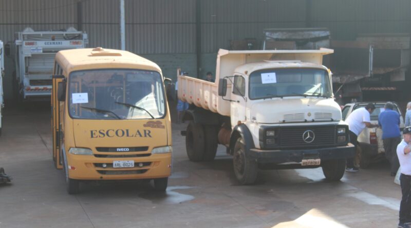 Entre os itens disponíveis, estavam carros, ônibus, caminhão, coletor/compactador de lixo, cortador de grama, implementos agrícolas e outros equipamentos de utilidade para o município.