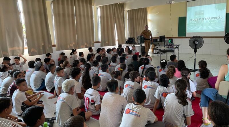 No último dia 25 de setembro, comemorou-se em todo o Brasil o ‘Dia Nacional do Trânsito’, uma data destinada a refletir sobre a importância da segurança nas vias e a conscientização de motoristas e pedestres. Para marcar a data significativa, a Escola Municipal Izolda Rizzato Liuti, de Indianópolis, recebeu o sargento Paulo Gomes, representante da 5ª Companhia Independente da Polícia Militar do Paraná, que compartilhou seu conhecimento com os estudantes sobre a relevância da conscientização no trânsito.