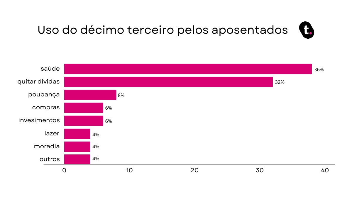 Uma pesquisa recente da meutudo mostrou que o principal uso do 13ª dos aposentados é voltado para a saúde, onde 36% dos entrevistados apontou que o valor era usado para gastos dessa área.