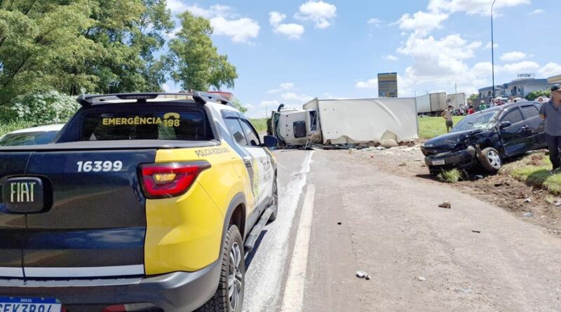 Uma colisão envolvendo dois automóveis e um caminhão foi registrada no início da tarde de quarta-feira, 19, por volta das 12h20min, na rodovia estadual PR-323, em Tapejara.