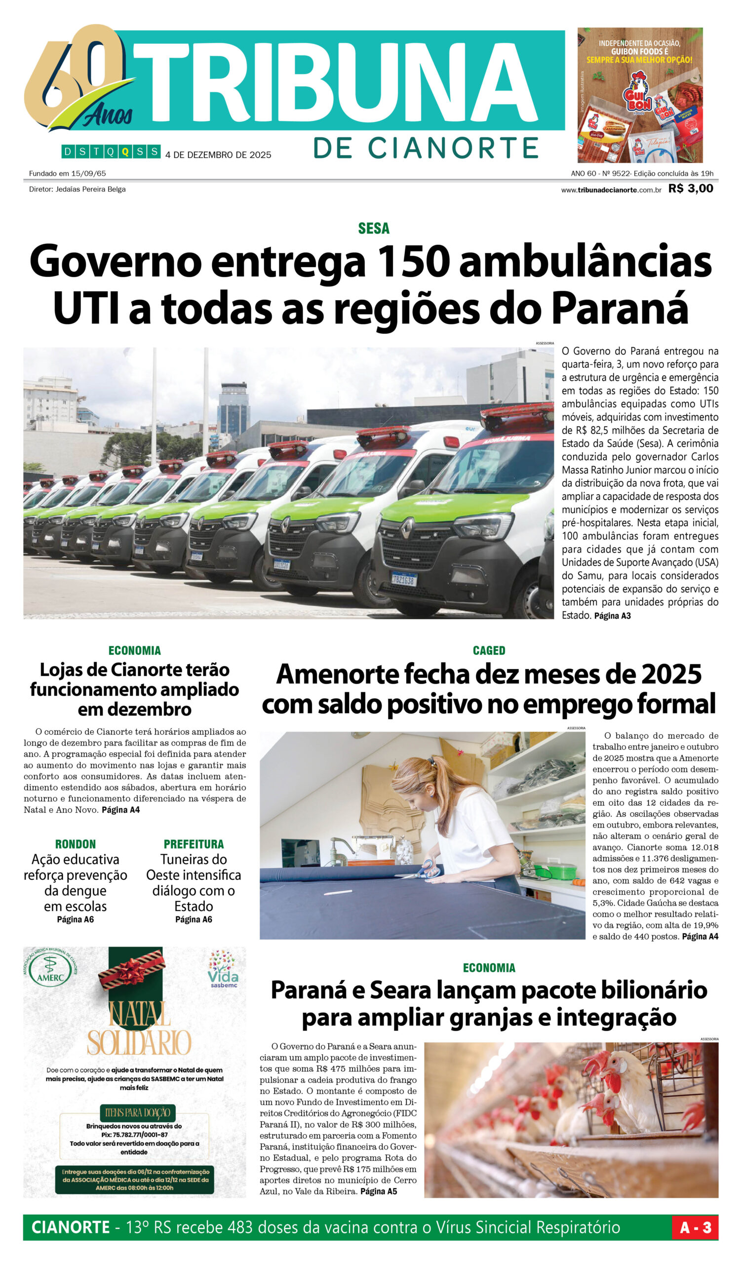 A Secretaria de Saúde de Cianorte confirmou no final da manhã de hoje, 17, o segundo caso de coronavírus. Trata-se de uma mulher de 62 anos, que integrou o mesmo grupo de pessoas que retornou no começo de março de uma viagem aos Emirados Árabes Unidos.