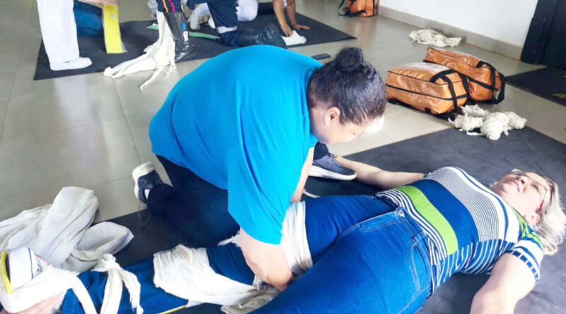 O controle de sangramentos e hemorragias também fez parte do treinamento. As equipes praticaram o uso de compressas e do torniquete, com orientações sobre quando e como empregar cada técnica. O tema foi tratado como prioridade, diante da relevância do controle rápido da hemorragia para a sobrevivência do paciente.