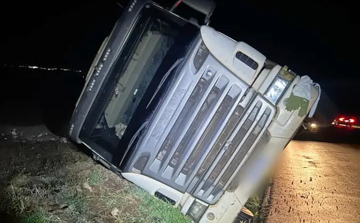 Conforme a PRE, o tombamento ocorreu na rodovia PR-486, km 117+600m, no trecho entre Alto Piquiri e o entroncamento com a PR-323. A Scania G 380, com emplacamento de Cianorte, tracionava um semirreboque SR.
