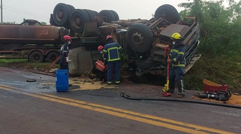 Um caminhoneiro ficou preso entre as ferragens da carreta que conduzia, após ela tombar na rodovia PR-567. O acidente aconteceu na manhã de quarta-feira, 25, próximo ao trevo de acesso a São Lourenço, distrito de Cianorte.