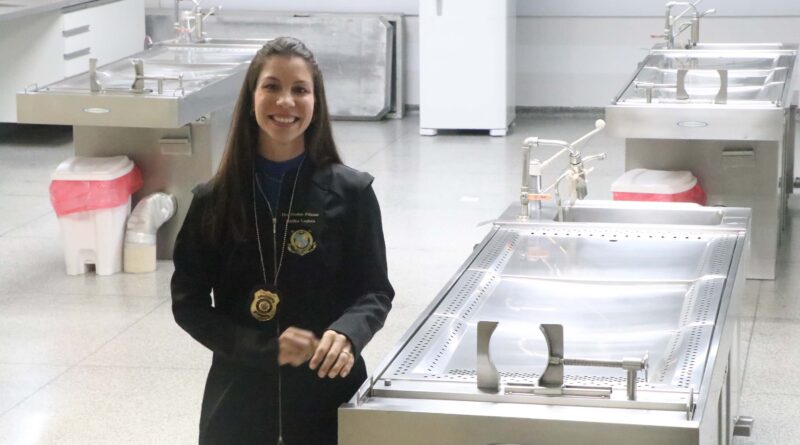 Na Polícia Científica do Paraná (PCP), são 180 mulheres nas carreiras de perícia e de auxiliar de perícia, lidando com algumas das fases mais importantes de uma investigação. Dentre elas, está a médica legista Suelen Frizzas, que atua no Instituto Médico Legal de Curitiba desde 2021. No dia a dia do trabalho, ela realiza exames de corpo de delito, produz laudos periciais e necropsias.